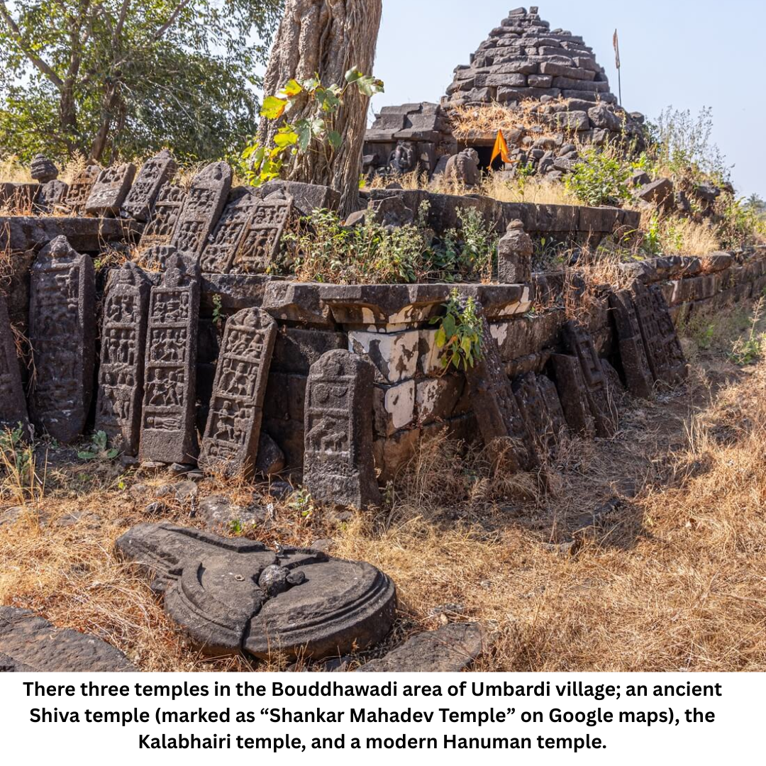 The temple grounds contain a significant number of memorial stones, including Hero stones, Sati stones, and a Gadhegal stone.